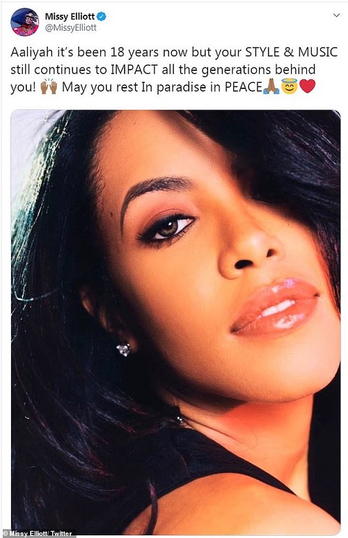Elliott, who is back on the music scene in a big way this year, tweeted a tribute to the fallen singer with a photo of Aaliyah and a message of solace.