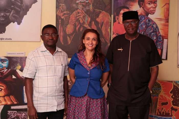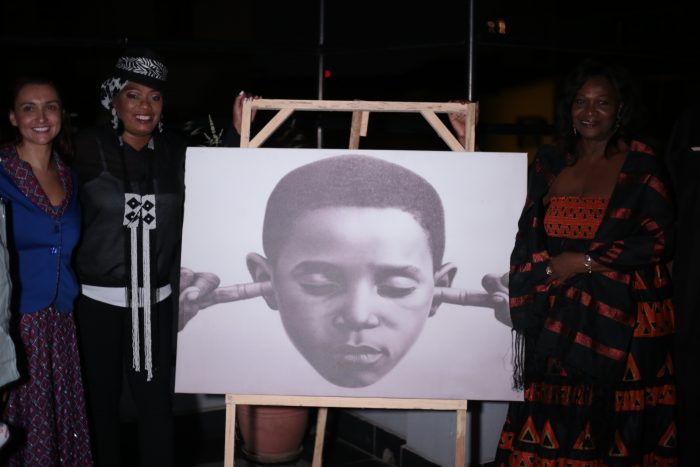 Mufu Onifade, Sarah Boulos and Prince Yemisi Shyllon at the Felabration art competition event on Saturday 28 Sept.