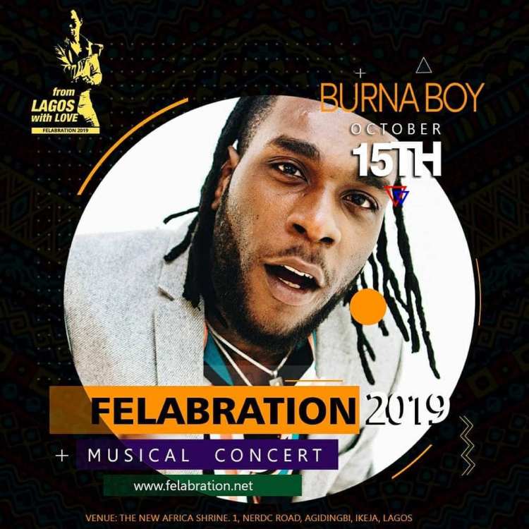 Nigerian Afrobeat sensation and BET 2019 Best International Act winner, Damini Ebunoluwa Ogulu, widely known as Burna Boy will be performing at Felabration 2019, amongst other prolific entertainers to treat fans to an exciting event.