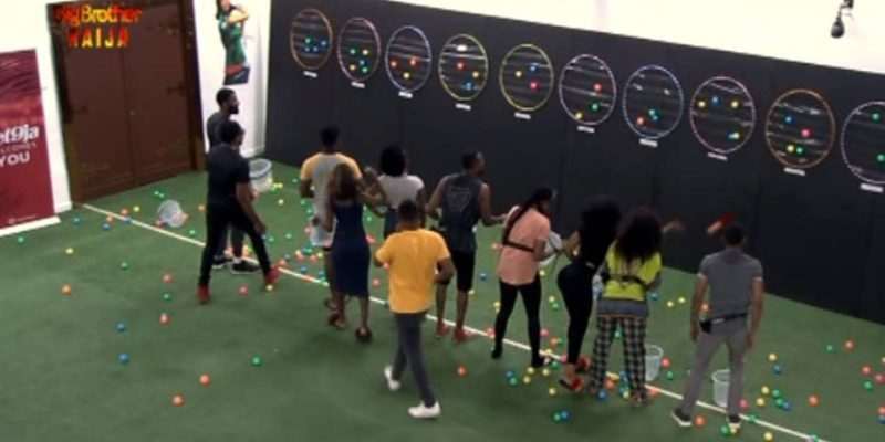 For this task, they were allowed to move around and throw their balls on any of their fellow Housemates’ hula-hoop. Basically, each Housemate was given the freedom to throw their balls at all times.