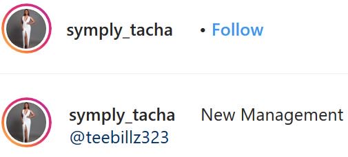 Sharing a collage of the brand, Tacha said, “New Management @teebillz323”