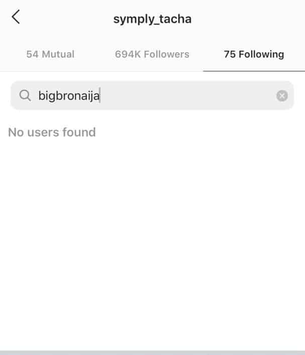 Tacha has reportedly unfollowed the official Instagram page of Big brother Naija following her disqualification from the reality show.