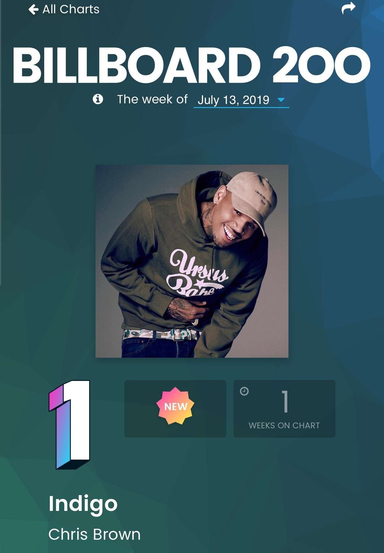 American singer, songwriter, and dancer, Chris Brown has earned his third No. 1 album on the Billboard 200 chart with his latest album, Indigo, which launches atop the list with 108,000 equivalent album units.