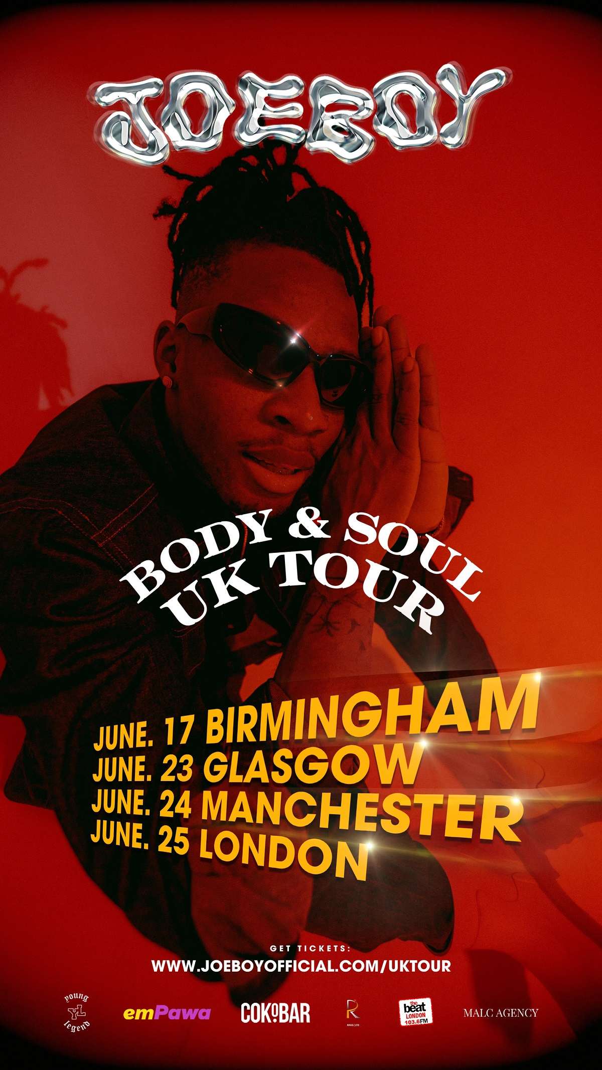 The Young Legend, Joeboy is getting ready to hit the road and bring his upcoming album Body & Soul to fans across the UK this summer. The tour will see Joeboy perform in some of the UK’s biggest cities, including London, Manchester, and Birmingham.