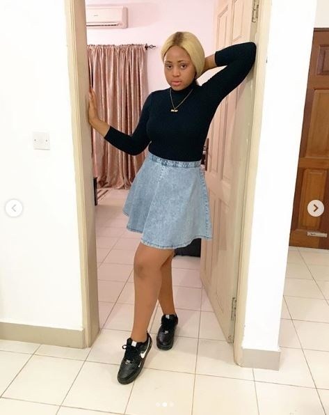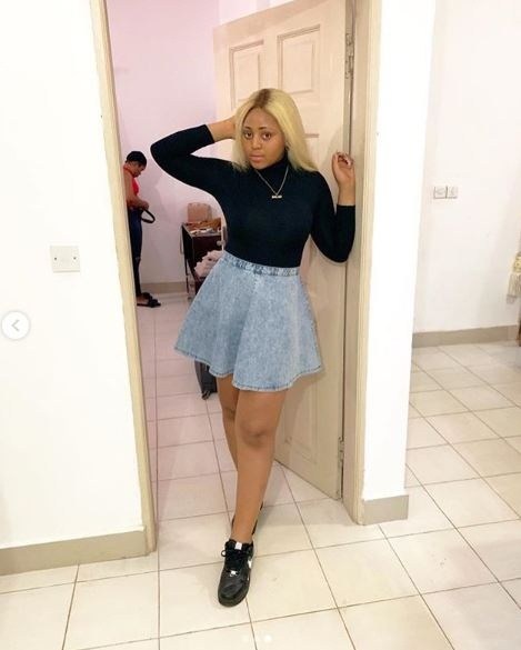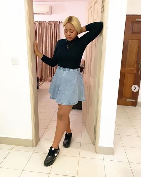 The beautiful and talented actress, Regina Daniels slew again in mini denim skirt looking alluring.