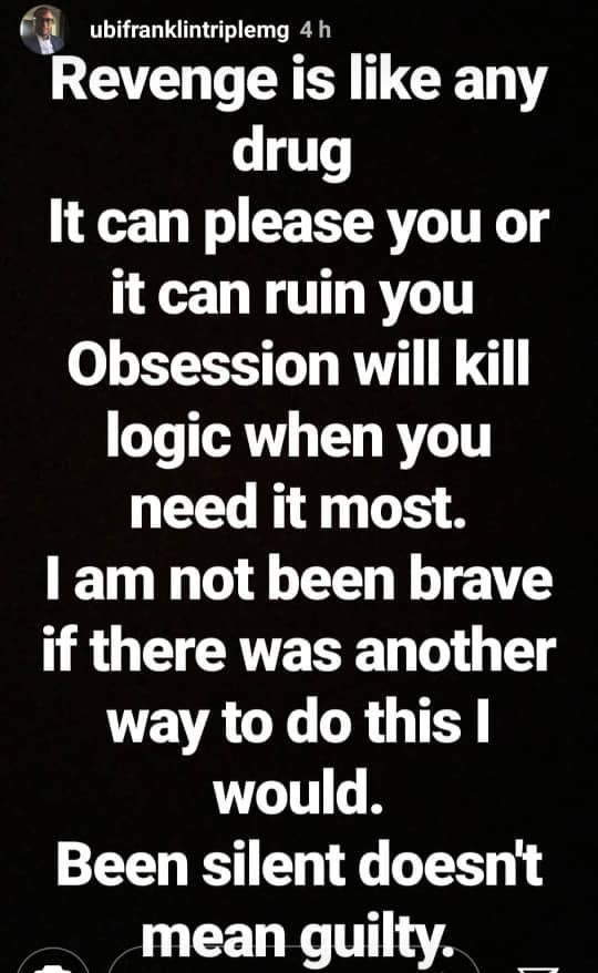 Recall Sandra had claimed that Ubi owed her N4million and slammed him for going on vacation to France despite not paying her the money owed, a post Ubi replied saying he would rather be silent about all the issues around the both of them.