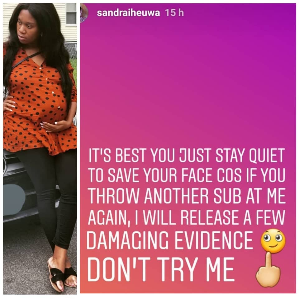 Businesswoman, Sandra Iheuwa, who is allegedly set to welcomed Tripe MG boss Ubi Franklin’s 4th child has taken to social media to issue a warning to him.