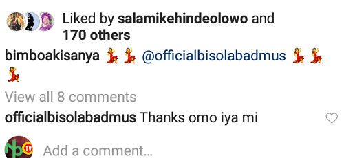 Bisola Badmus was celebrated by her colleague, Bimbo Akinsanya. We say big congrats to her!