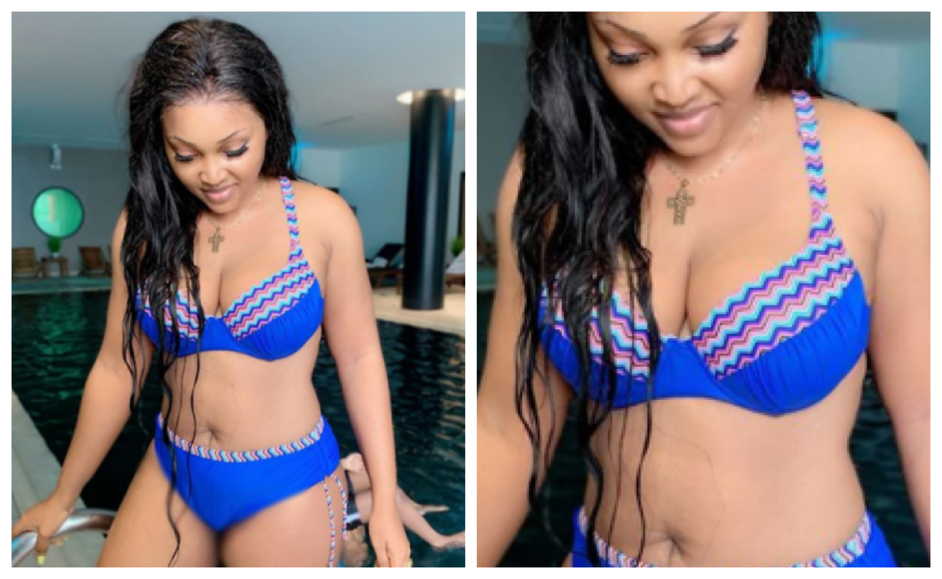 Nollywood actress, Mercy Aigbe is looking sexier than ever as she was decked in blue bikini outfit on Sallah day.