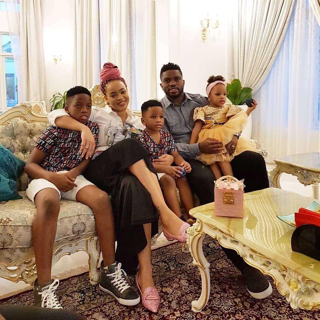 Former Super Eagles captain, Joseph Yobo took a family photo with his beautiful wife, Adaeze and lovely kids.