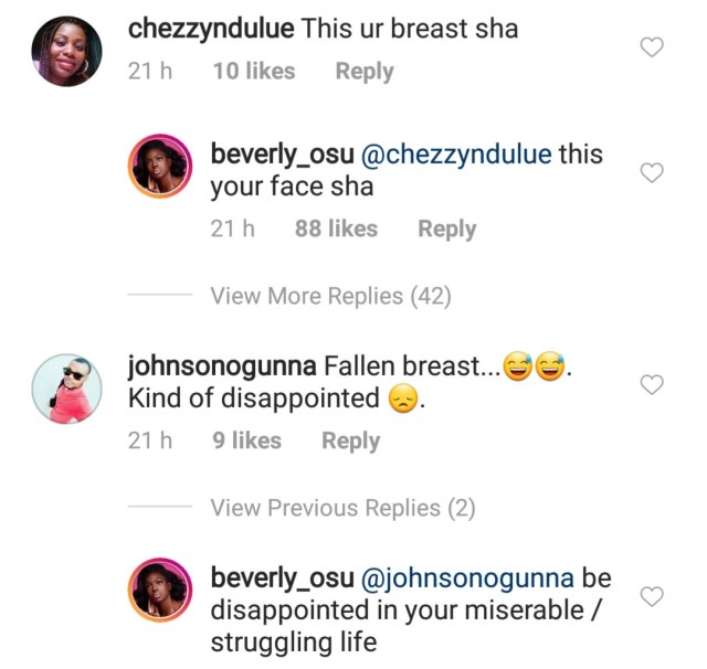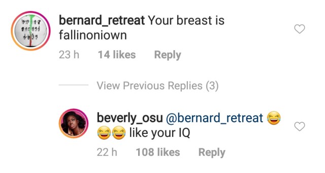 Former Big Brother Africa housemate, Beverly Osu took to the gram to dauntlessly share this photo of herself on her page on Friday and some trolls who didn’t have anything nice to say were put in their place.
