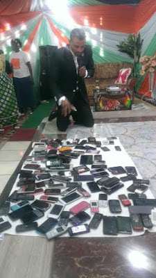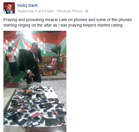 “Photos of a pastor praying over phones belonging to his church members, saying he is provoking miracles through them.”