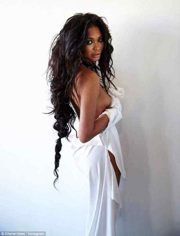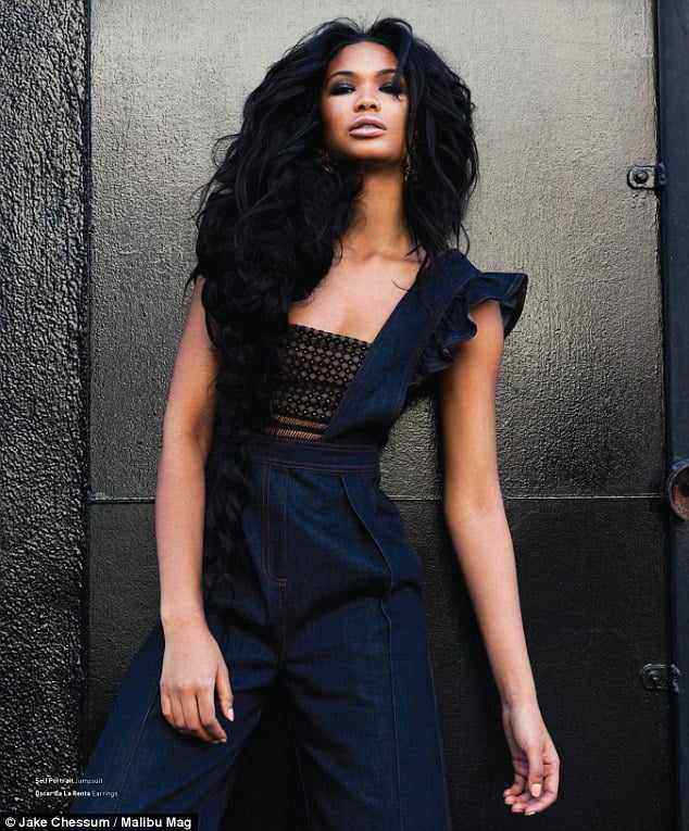 The 24-year-old Victoria’s secret model is photographed by Jake Chessum and styled by Anita Patr!ckson in a Louis Vuitton spring/summer 2015 blue sweat dress and ankle boots.In another photo, Chanel is captured wearing a white jumpsuit and also photographed topless in white.