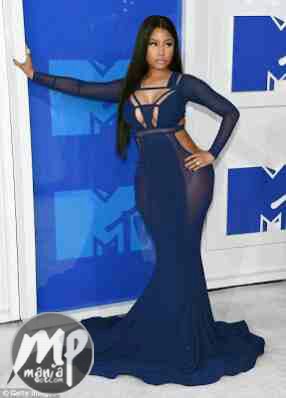 Rapper Nicki Minaj put her jaw-dropping, S3xy body on display on the red carpet at the 2016 VMAs on Sunday, in a purple cut-out gown which accentuated every curve of her figure.