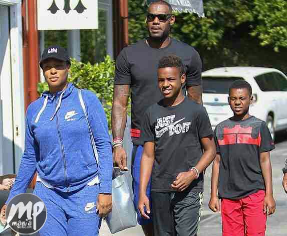 The basketball star was pictured with his wife Savannah Brinson and their two sons, Bryce Maximus James, 9 and LeBron James Jr., 11, as they went for a family treat in Brentwood, California…