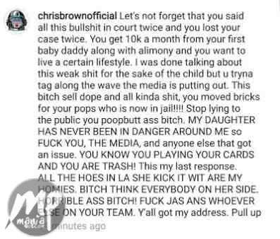 Why he attacked his baby Mama Nia Guzman is not known but he attacked her and basically called her a gold digger. She didn’t ignore the comments. She came back at him after she disabled comments on her own IG page knowing Chris Brown’s fans could attack her on his behalf.