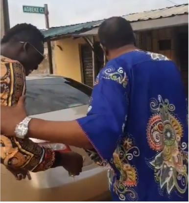 One of the very successful comedians in Nigeria, Akpororo, recently paid his friend’s father, Mr Oluwole a visit and surprised him with a car gift.