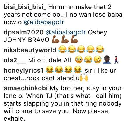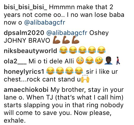 Comedian, Alibaba Shows off His Chest, challenges Boxer, Anthony Joshua.