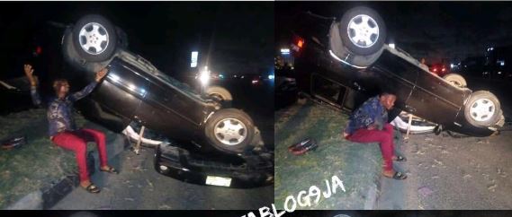 According to an eyewitness, the car somersaulted several times almost claiming the life of the comedian.