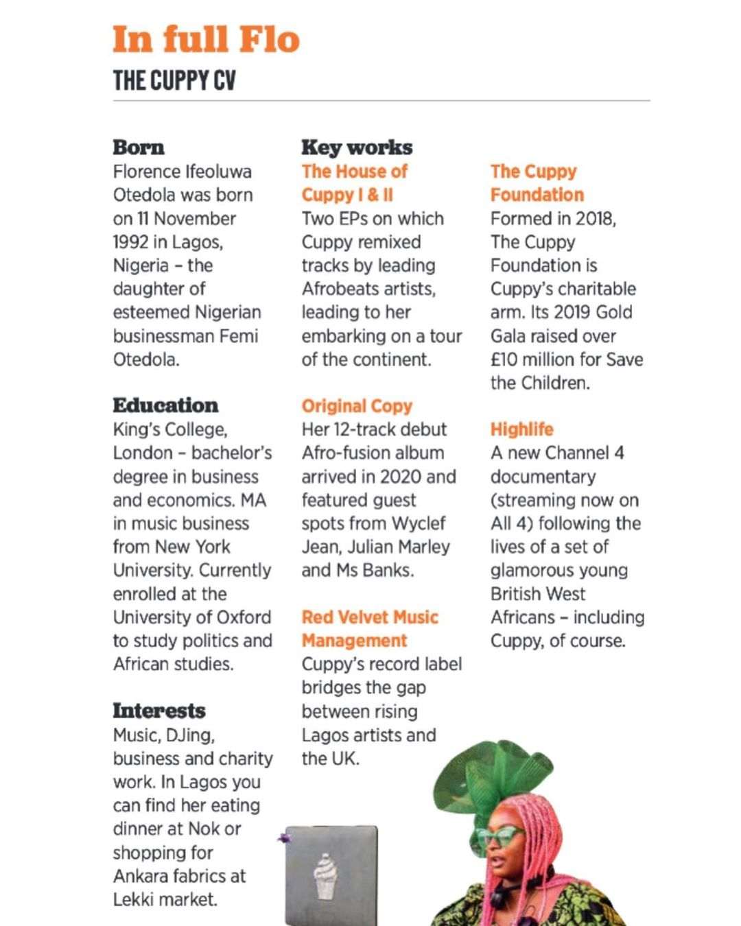 In the issue, the celebrity DJ and artiste talked about how moving to London at the age of 13 was quite a cultural shock for her. “So have never visited the UK, at 13, I found myself in board school there. The food was different, the weather was different, everything was different.”