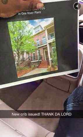 He shared clips on Snapchat with the caption “Boutta buy my new crib!!” another one reads “New crib issued! THANK DA LORD.”
