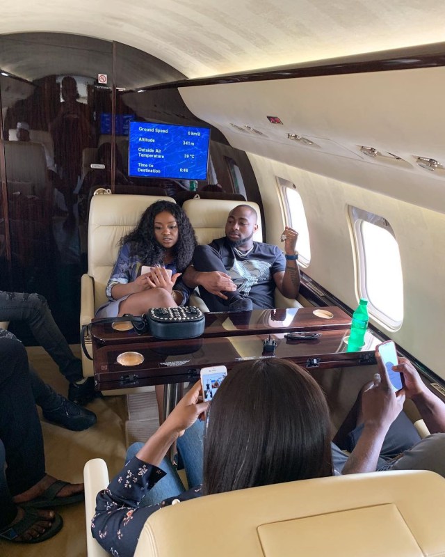 Davido also posted a photo of himself with chilling with his girlfriend, Chioma in a private jet.