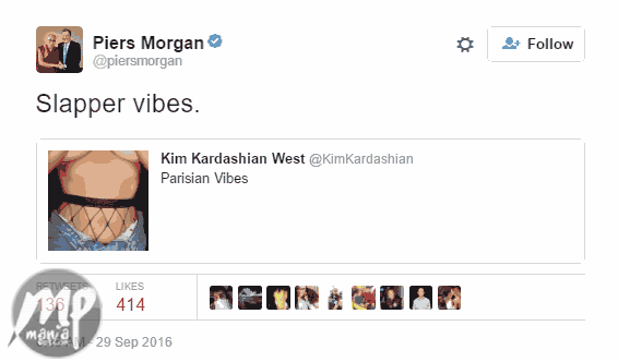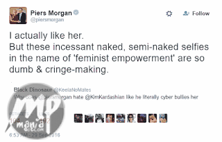 British journalist Piers Morgan branded Kim a ‘Slapper’ because she shared a new Nak3d selfie and he thinks it sends a “completely wrong message to the millions of young girls who follow her that the only path to feminist success is flashing Brea5ts.”