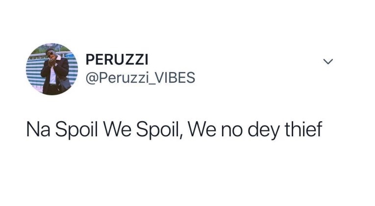 Peruzzi has finally reacted.. In a tweet he made on Twitter, he simply wrote; “Na spoil we spoil, we no thief”
