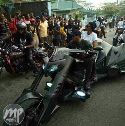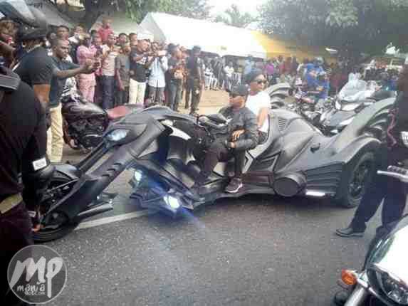 The monster bike is described as a Batcycle Trike while others said it is called ‘Spiderman super bike’ Whichever one it is, the bike awe the crowd, who continuously chanted “Donald Donald” as he drove through the carnival route…