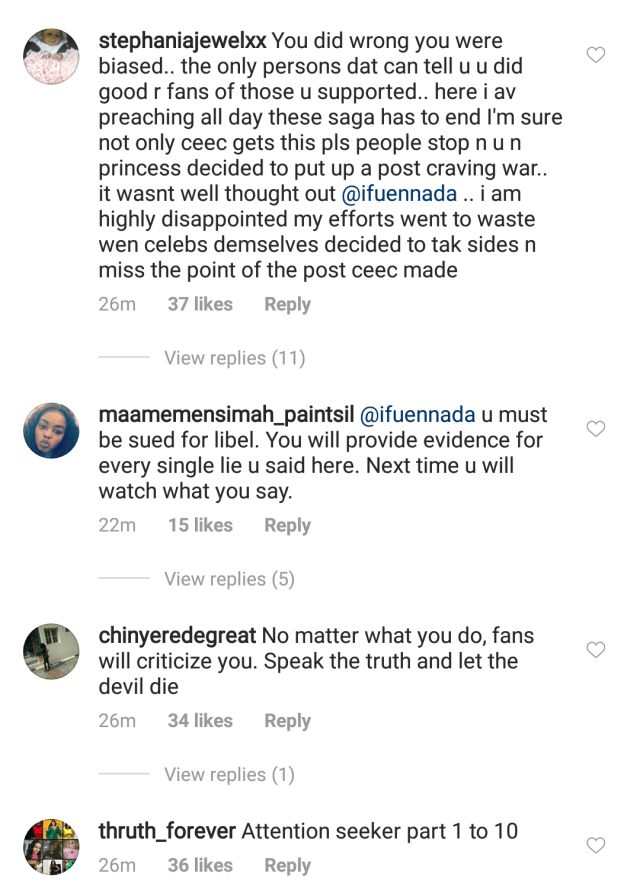 Ifu had insinuated in her post that Cee-C was the one who has been sabotaging all the peace efforts she’s made.