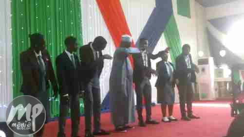 Former Vice President Atiku Abubakar shared a video of him dabbing with students at the inauguration of The American University of Nigeria Law School, on his twitter page.