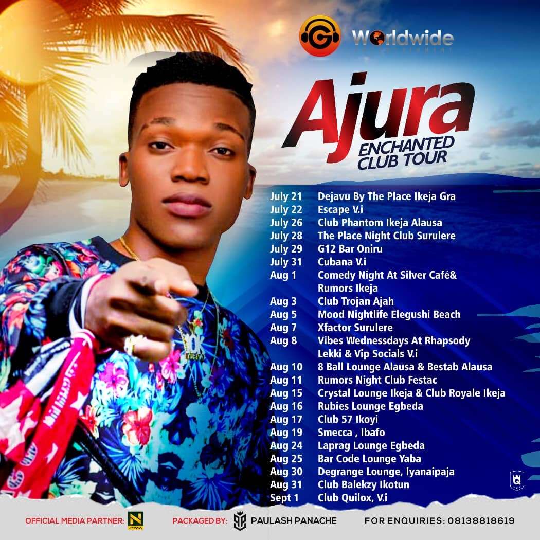 Ajura will be showcasing his talent with electrifying performances across 22 Night Clubs in Lagos and will be headlining Unilag Hall weeks grand finale events where he will be touring 13 halls in University of Lagos slated to kick off 3rd to 17th of August, 2018 which he calls “Enchanted Unilag Tour“.