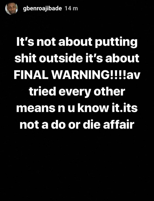 Nollywood Actor and model Gbenro Ajibade has publicly called out his wife, Osas Ighodaro on his instastories accusing her of neglecting their child to pursue other things.