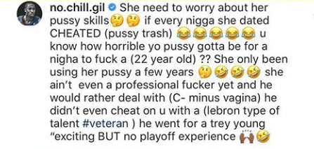 According to Gilbert, there’s something not right with Khloe’s p**sy and He thinks she should fix that NOW. Gilbert says every man she has been with cheats and that SPEAKS A VOLUME! He then went on putting all the blames on her P!