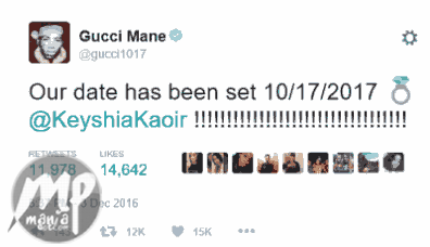 Saturday, Gucci Mane took to his twitter account to announce their wedding date.
