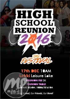 Its simple and for real. The High School Reunion Festival 2016 is a reunion event comprising of several high schools, coming together to stage their reunion on the same day and venue. It is being organized by representatives from Queens college,St.Gregs,F.G.C Ijanikin,Kings college,F.G.C Odogbolu, I.S.L, O.L.A, Airforce,F.G.C Sagamu etc.