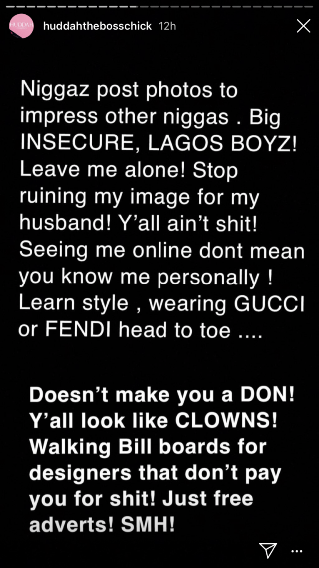 Kenyan socialite, Huddah Monroe has gone hard at so-called Nigerian big boys, particularly the Lagos ones for defamation of character.