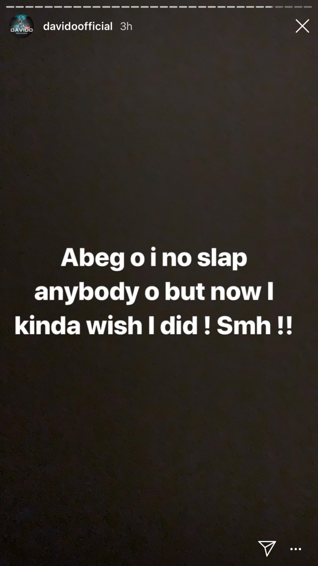 After continuously denying that he assaulted Kizz Daniel’s manager, with several people confirming that he actually did, Davido now wished he’d in fact, slapped the said gentleman.