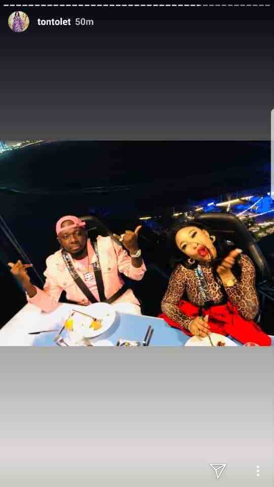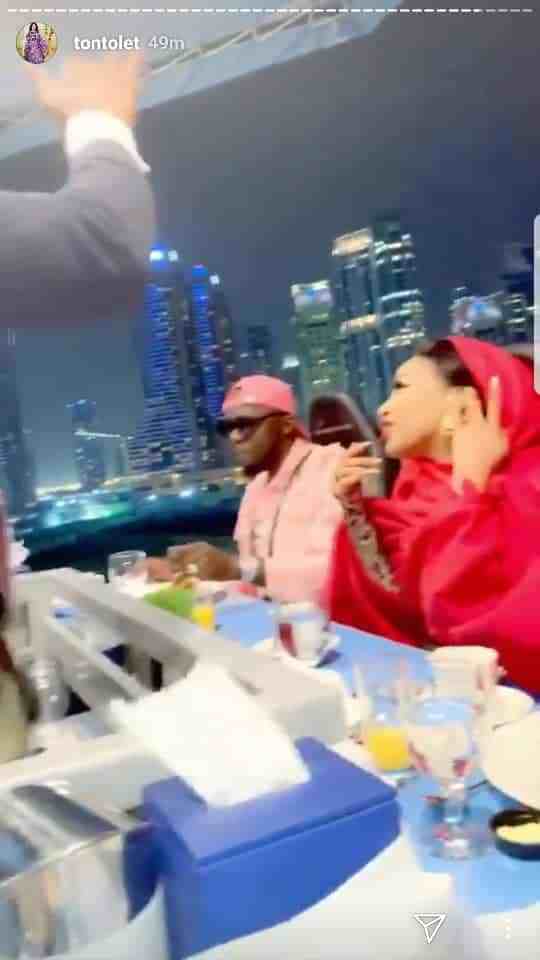 Nollywood actress and mother of one, Tonto Dikeh who is currently in Dubai with her bestie Bobrisky took to her Instagram Stories to share photos of herself and her man enjoying a romantic dinner in the sky.