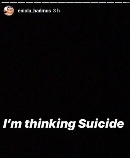 Very Popular Nollywood actress and filmmaker, Eniola Badmus recently took to social media to cry out over being suicidal.
