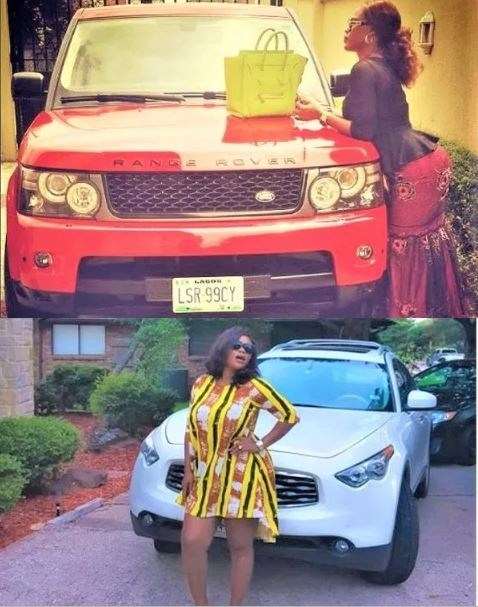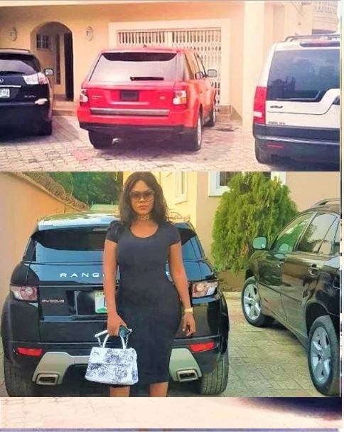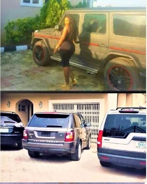 Her garage features cars like Mercedes-Benz 450 (believed to be a gift to her by a famous Nigerian Clergy), Range Rover Sport, Lexus SUVs, Land Rover LR3, etc.