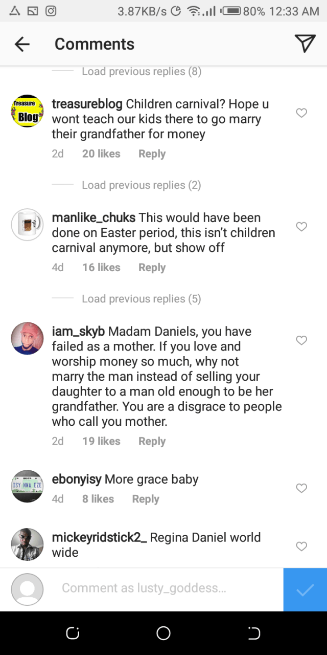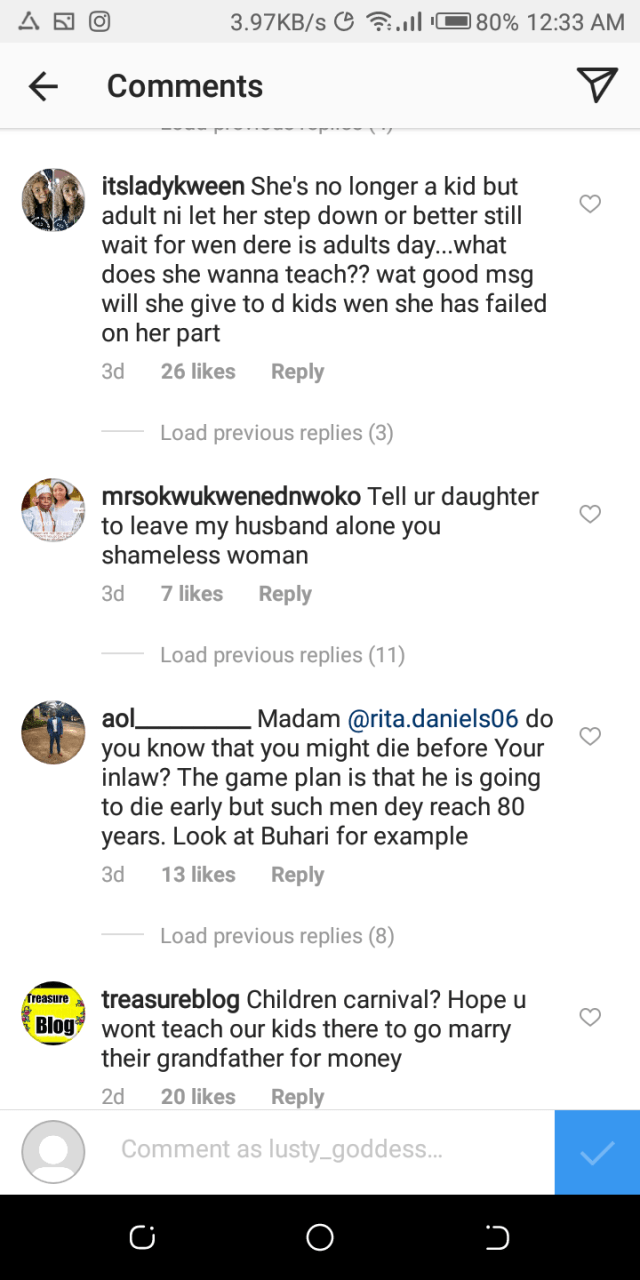 Some people have now taken to her mother’s page to question why she had to allow her daughter to marry the billionaire if it wasn’t for money.