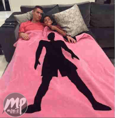 The blanket has his signature pose photo on it… Nice!! Date: 2016-10-21 Category: Gist & Gossip Tags: Cristiano Ronaldo