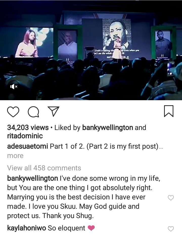His comment was in reaction to Adesua’s speech just before Banky declared his intention to contest for a seat in the House of Representatives.