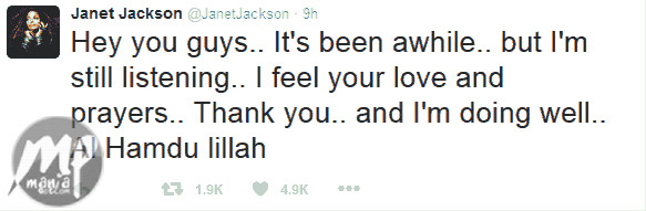 Janet Jackson finally broke her social media silence by sending out a tweet to her fans.