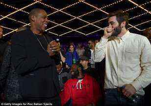 Jay Z shares a joke with Jake Gyllenhall at the Madison Square Garden. (Getty Images for Roc Nation Sports)