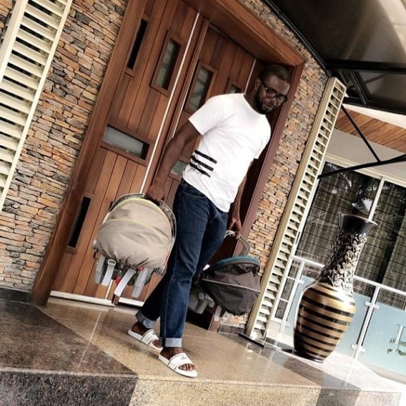 Entertainer JJC Skillz and his Actress wife, Funke Akindele recently welcomed a set of twin boys and the new dad is sure still basking in the euphoria.