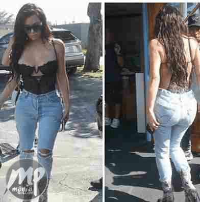 Kim K was seen in Miami Florida on Thursday wearing a racy black sheer bustier paired with high-waisted jeans.