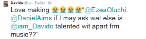 HKN Gang music star, Davido was recently asked by a fan what other talent he has apart from music and he said ‘lovemaking’. Date: 2015-03-05 Category: Gist & Gossip Tags: Davido - David Adedeji Adeleke, making