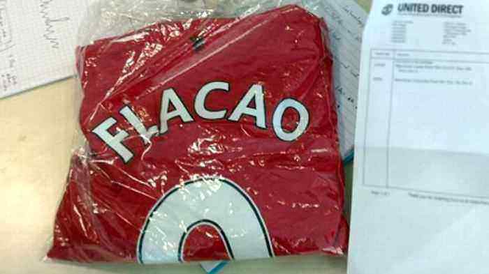 Manchester united megastore fail to check the spelling of new signing falcao before sending out a shirt to a fan… Either that or the red devils have a new arrival they haven’t told us about.